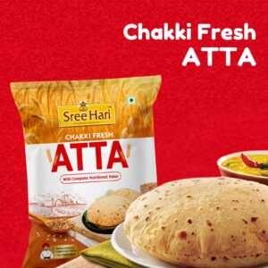Experience the goodness of tradition with Chakki Fresh Atta – Sree Hari. Made from carefully selected premium wheat and ground using traditional chakki methods, this atta ensures soft, fluffy rotis with rich taste and complete nutrition. Hygienically packed to retain freshness, it is high in fiber and perfect for everyday healthy meals.